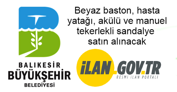 Balıkesir Büyükşehir Belediye Başkanlığı tarafından; BEYAZ BASTON, HASTA YATAĞI, AKÜLÜ VE MANUEL TEKERLEKLİ SANDALYE ALIMI alımı 4734 sayılı Kamu İhale Kanununun 19 uncu maddesine göre açık ihale usulü ile ihale edilecektir. İhale; 20 Nisan 2021 tarihinde Saat: 11.00 da Balıkesir Büyükşehir Belediyesi Eski Kuyumcular Mh. Mekik Sk. Kat: 1, No:109 İhale Salonu Karesi / BALIKESİR adresinde yapılacaktır. Detaylı bilgi için tıklayınız