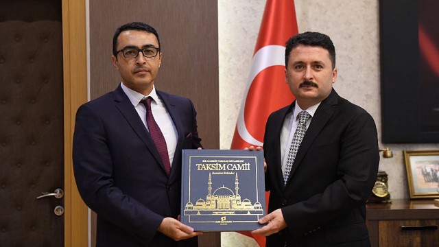 BİK Balıkesir Şube Müdürü Halil İbrahim Parlak, Altıeylül Belediye Başkanı Hasan Avcı’yı makamında ziyaret etti. Ziyaret kapsamında BİK Balıkesir Şube Müdürü Halil İbrahim Parlak Basın İlan Kurumu’nun hazırlamış olduğu ‘Bir mabedin varoluş mücadelesi TAKSİM CAMİİ’ kitabını hediye etti. BİK Şube Müdürü Halil İbrahim Parlak, kitabın içeriği hakkında Altıeylül Belediye Başkanı Hasan Avcı’ya bilgi verdi. Şube Müdürü Halil İbrahim Parlak; “Taksim’e cami yapılması hayali, 28 Mayıs 2021 tarihinde Cumhurbaşkanı Recep Tayyip Erdoğan tarafından Taksim Camii’nin açılmasıyla sona erdi. Yaklaşık 150 yıllık bir mücadelenin ardından İstanbul’a kazandırılan caminin asırlık serüveni Basın İlan Kurumu tarafından kitaplaştırıldı. Basın İlan Kurumu Yayınları’ndan çıkan eser, Taksim Topçu Kışlası Camii’nden başlayarak bölgenin yıllara yayılan gelişimini ve siyasi tarihimizin önemli kesitlerini okuyucuyla buluşturuyor. Taksim’e cami talebi kadar bu talebe karşı çıkanların da sayfalara taşındığı kitapta uzun soluklu bir mücadele, gazete haberleri ve köşe yazıları üzerinden tüm yönleriyle anlatıldığını” söyledi. Basın İlan Kurumunun yerel basın için önemine değinen Altıeylül Belediye Başkanı Hasan Avcı, Balıkesir Şube Müdürlüğü bünyesinde yapılan çalışmalardan duyduğu memnuniyeti dile getirdi. Başkan Avcı, BİK Şube Müdürü Halil İbrahim Parlak tarafından verilen kitap için teşekkür ederek kitabın önemine değindi. Altıeylül Belediye Başkanı Hasan Avcı, “Taksim Camii’nin Cumhurbaşkanı Recep Tayyip Erdoğan’ın İstanbul Büyükşehir Belediye başkanlığı dönemine dayandığını” ifade etti. Başkan Avcı, “Cumhurbaşkanı Recep Tayyip Erdoğan’ın 1994 yılında İstanbul Büyükşehir Belediye Başkanlığı yaptığı süre zarfı içerisinde Taksim’e Camii yaptırılma konusunu dile getirmişti. Asırlık hayal 28 Mayıs 2021 yılında Cumhurbaşkanı Recep Tayyip Erdoğan tarafından Taksim Camii ibadete açılmasıyla son buldu” diye konuştu.