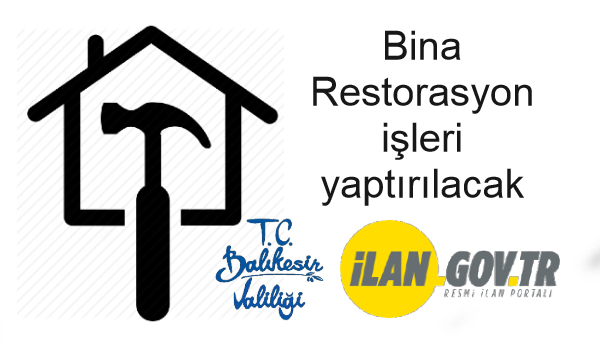 Balıkesir Yatırım İzleme ve Koordinasyon Başkanlığı tarafından Bina Restorasyon işleri yaptırılacaktır.