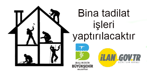 Balıkesir Büyükşehir Belediye Başkanlığı tarafından Bina tadilat işleri yaptırılacaktır.