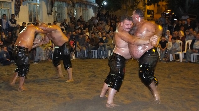 Burhaniye'de gece güreşlerini 2 bin kişi izledi