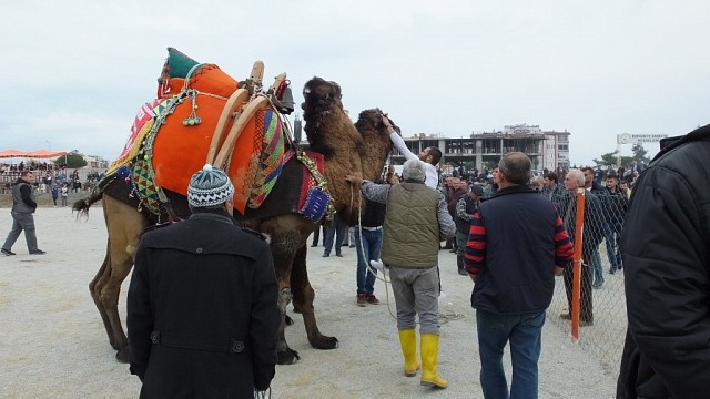 Burhaniye'de güreşçi 82 deveye havut giydirildi