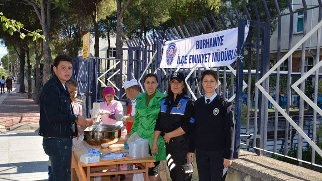 Burhaniye İlçe Emniyet Müdürlüğü tarafından düzenlenen aşure hayırında şehitlerimiz rahmetle anıldı. 15 Temmuz şehidi özel harekat polisi Mustafa Serin’in annesi Sevcan Serin’in de katıldığı ve 3 kazan dolusu aşure dağıtılan hayıra, Kaymakam Vekili Mustafa Enes Tutmaz, daire müdürleri ile vatandaşlar ve polisler katıldı. İlçe Emniyet Müdürü Tuncay Orhan, konuklarını kapıda karşılarken, aşure servisini de kadın polisler yaptı. Şehitlerin ruhlarına dualar okundu. Müdür Orhan, aşure hayrının geleneksel hale geldiğini söyleyerek katılımcılara teşekkür etti. (İHA)
