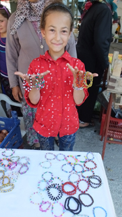 Balıkesir’in Burhaniye ilçesinde, ilkokul öğrencisi Sanem Deniz, ürettiği takıları ilçe pazarında satarak okul haçlığı hazırlıyor. İlçenin kırsal Kırtık Mahallesinde oturan Deniz, boncuk dizmeyi iki abladan öğrendiğini söyledi. İlçe Pazarında, babası İsmail Deniz’in sebze tezgahının yanındaki bir masa üzerinde satış yapan 4. sınıf öğrencisi Sanem Deniz, ürünlerinin ilgi gördüğünü söyledi. Boncuklardan yaptığı bilekliklerin ilgi gördüğünü anlatan Sanem Deniz ”Bir gün pazarı gezerken iki abla bu tür şeyler yapıp satıyordu. Ben de, babama aldırdığım boncuklardan bileklikler yapmaya başladım. Pazarda bunları 5 liradan satıyorum. Okul harçlığı biriktiriyorum” dedi. (İHA)