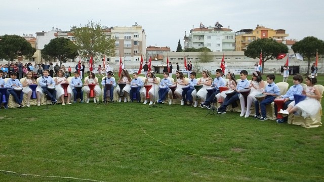 Burhaniye ilçesinde, 23 Nisan Ulusal Egemenlik ve Çocuk Bayramı'nın 99'uncu yılı görkemli törenlerle kutlanırken, Nadir Tolun İlkokulu Ritim Grubu’nun gösterileri törenlere damgasını vurdu. 8 Eylül Stadında düzenlenen törenlere Kaymakam Hüseyin Öner, Garnizon Komutanı Topçu Yarbay Mümin Ertuğran, CHP’li Belediye Başkanı Ali Kemal Deveciler, Burhaniye Meslek Yüksekokulu Müdürü Prof.Dr.M.Oğuzhan İlban ile daire müdürleri, öğretmenler, öğrenciler ve vatandaşlar katıldı. Törende, günün anlam ve önemini anlatan konuşmayı İlçe Milli Eğitim Müdürü Bora Zihni yaptı. Protokolün, öğrencilerin ve vatandaşların bayramını kutlamasının ardından başlayan törenler, çok renkli gösterilere sahne oldu. Öğrenciler şiirler okurken, halk oyunları ve jimnastik ekipleri gösteriler yaptı. Düzenlenen resim ve kompozisyon ve atletizm yarışmalarında dereceye girenlerin ödülleri verildi. Nadir Tolun İlkokulu Ritm Grubunun, eğitmenleri Metin Çavdar öncülüğünde yaptıkları gösteri büyük ilgi gördü. Ritim gurubunun mini konseri öğrencileri de coşturdu. Ritm grubunun konseri sırasında çok sayıda öğrenci oyunları ile ritim grubuna eşlik etti. Ritm grubunda yer alan öğrencilerde mutluluklarını dile getirdi. Ritm grubunda görev alan öğrencilerden Lara Solak, “Bence gösteri çok heyecanlıydı. Güzel bir etkinlik oldu” dedi. Hüseyin Tura Akbulut da, ”Ekip de en iyi darbuka çalan ben oldum. Mutluyum” dedi. Pelin Yıldız ise, “Atatürk’ün bize emanet ettiği 23 Nisan’ı çok seviyorum. Ben bu sene ilk defa darbuka çaldım. Darbukayı da çok sevdim” dedi. Ayşe Demir ise, ”İlk defa ritm grubunda yer aldım. Çok çalıştık. Ama başardık” dedi. Ekibin 4 yıldır çalıştığını anlatan Öğretmen Yasemin Diken de, “Öğrencilerimiz bunun için çok emek verdiler. Çok da güzel çaldılar. Güzel bir etkinlik oldu. Velilerimiz keyif aldı. Burhaniyeliler keyif aldı. Öğrencilerimiz keyif aldı. Bize destek olan Metin Çavdar hocamıza teşekkür ediyorum. Gösterilerimiz devam edecek” dedi. Kaymakam Hüseyin Öner, törenin sonunda İlçe Milli Eğitim Müdürü Bora Zihni ve törenlerde görev alan öğretmenlere teşekkür etti. (İHA)