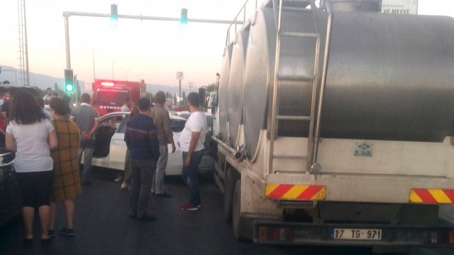 Balıkesir’in Burhaniye ilçesinde 6 aracın karıştığı zincirleme trafik kazasında 1 kişi yaralandı. Edinilen bilgiye göre kaza, akşam saatlerinde Çanakkale-İzmir karayolunun otogar kavşağında meydana geldi. Çanakkale yönüne giden A.U. yönetimindeki 17 TG 971 plakalı kamyonet, ışıkta bekleyen 20 DG 980 plakalı araca çarptı. Kazaya karışan 06 NT 410, 34 DR 3231, 45 K 5524 ve 10 LF 574 plakalı araçlar hasar görürken, yaralanan kamyonet sürücüsü A.U, ambulansla Burhaniye Devlet Hastanesine kaldırıldı. Yol bir süre yok trafiğe kapanırken, kısa sürede kaza yerine gelen itfaiyenin yolu temizlemesi ile trafik normale döndü. Kaza ile ilgili soruşturma sürdürüyor. (İHA)