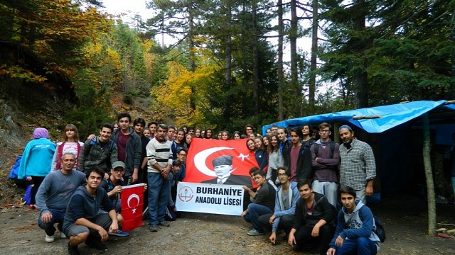 Balıkesir’in Burhaniye ilçesinde, Burhaniye Anadolu Lisesi öğrencileri ve öğretmenleri, Kazdağı Döşeme Dere güzergâhında 16 kilometrelik Cumhuriyet yürüyüşü gerçekleştirdi. Okulun, Gezi Kulübünün, Kazdağı’nda sonbaharın bütün güzelliğini yaşamak için düzenlediği yürüyüşe 71 kişi katıldı. Biyoloji Öğretmeni Ömer Aydemir’in rehberliğinde yürüyen öğrenciler, güzel bir gün geçirmenin yanında biyoloji ve doğa yürüyüşü alanlarında Ömer Aydemir’den; coğrafya alanında ise coğrafya Öğretmeni Levent Toy’dan bilgi aldılar ve derslerde öğrendiklerini doğada deneyimleme şansına sahip oldular. Bir gün boyunca cep telefonlarından ve bilgisayarlardan uzakta, doğayla baş başa kalan öğrenciler, orman işletmenin geçici barınağında odun ateşinde çay demleyip yemek yerken, ormancılarla sohbet ettiler. Burhaniye Anadolulu Lisesi Müdür Bayram Eroğlu, Kazdağı yürüyüşüne katılan öğretmen ve öğrencilere teşekkür etti. Müdür Eroğlu, gezilerin devam edeceğini söyledi. (İHA)
