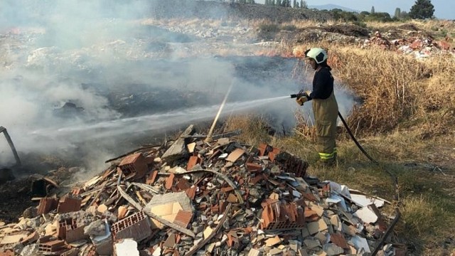 Balıkesir’in Burhaniye ilçesinde, Ören yolu üzerinde, Menekşe Kır Düğün Bahçesi arkasındaki alanda çıkan ot yangını paniğe neden oldu. Öğle saatlerinde neden çıktığı belirlenemeyen ot yangını geniş alanda etkili oldu. Otların tutuşması ile başlayan yangın, Menekşe Kır Bahçesi ve hemen arkasında bulunan ahırları ve içindeki hayvanları da tehdit etmeye başladı. Büyükşehir Belediyesi İtfaiyesinin olay yerine gelerek söndürme çalışması yapmasıyla kontrol altına alınan yangın, arasöz’ün su ikmaline gitmesi ile bir başka yerden tekrar başladı. Vatandaşların ve çiftlik çalışanlarının panikle müdahale ettiği yangın, gelen başka bir itfaiye aracının müdahalesi ile yeniden kontrol altına alındı. İtfaiyenin soğutma çalışmaları sonrasında yangın tamamen söndürülürken, vatandaşlarda rahat bir nefes aldı. (İHA)