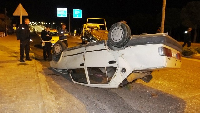 Burhaniye’de otomobil takla attı