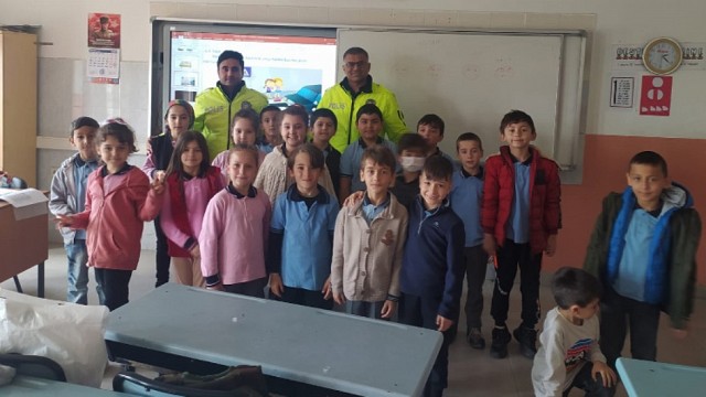 Burhaniye’de 10-16 Nisan Polis haftası etkinliklerinde, emniyet müdürlüğüne bağlı trafik ekipleri Şehit Yılmaz Kobak ilkokulu 2. Sınıf öğrencilerine trafik konusunda bilgi verdi. Mesleklerin kutlama günlerinde o meslekten ilgilileri okula davet eden Şehit Yılmaz Kobak ilkokulu 2. Sınıf öğretmeni İlknur Akbey ve sınıf annesi Hatice Yıldız’ın bu seferki konukları trafik polisleri oldu. Burhaniye Emniyet Müdürlüğü trafik ekiplerinde görev yapan 2 polis memuru okula gelerek minik öğrencilere trafikte ne yapılması gerektiğini tek tek anlattı. Öğrencilere mutlaka trafik polislerine, trafik işaretlerine ve yaya kaldırımlarına dikkat etmelerini isteyen polis memurları, ülkemizde yaşanan dikkatsizlik sonucu olan kazalarda ne yazık ki birçok vatandaşımız ölümlü ve yaralamalı kazalara karışıyor. Bu nedenle yolda yürürken mutlaka yapılması gerekenlere uymak bir trafik kuralıdır. Yaya kaldırımları, yaya geçitleri, trafik ışıkları na mutlaka uymamız ve yolda dikkatli olmamız gerekiyor” dediler. Haber ve fotoğraflar: Şenol TORLAK