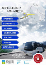 Balıkesir Büyükşehir Belediyesi, BTT A.Ş. ile başlattığı konforlu modern ve güvenli toplu taşıma seferberliği kapsamında Güney Marmara Bölgesindeki Erdek ve Bandırma hatlarından sonra Kuzey Ege Bölgesinde (Edremit Körfezi) yer alan Ayvalık ve Edremit ilçelerine de seferlerine başladı. HEDEF MODERN, KONFORLU, GÜVENLİ ULAŞIM Büyükşehir Belediyesi, şehir içi toplu taşımada konforlu, modern ve güvenli taşımacılığı hedef ediniyor. Bu kapsamda BTT A.Ş. ile başlatmış olduğu Erdek ve Bandırma hatlarından sonra Ayvalık ve Edremit ilçelerine de seferlerine başladı. Körfez Bölgesi’nde bulunan ilçe mahallelerine ulaşımını sağlayabilecek olan vatandaşlar için ulaşım özellikle Altınova, Sarımsaklı, Altınoluk ve Akçay mahallelerine artık daha da kolay, konforlu ve güvenli oluyor. TÜM YOLCULARDA AKILLI BALKART KULLANILACAK Balıkesir Büyükşehir Belediyesi Ulaşım Planlama ve Raylı Sistemler Daire Başkanlığı'ndan verilen bilgiye göre, ilçeler arası taşımacılıkta kullanılan taşıtlar yolcu konforunu ön planda tutacak şekilde tercih edilmiş olup tüm yolcularda 'akıllı balkart' kullanacak. “Güvenli ve konforlu taşıma” sloganı ile yola çıkan Balıkesir Büyükşehir Belediyesi il genelinde tüm toplu taşıma hizmetlerini akıllı balkart sisteminde gerçekleştirme çalışmalarına hızlı devam ediyor. Özel sektörün akıllı balkart ile yolculuk talebini karşılayamadığı güzergahlarda ise BTT A.Ş ve Balıkesir Büyükşehir Belediyesi'nin bu ihtiyacı karşılamak üzere çalışmalarını hızla yaygınlaştırmaya devam ettiği vurgulandı. SEFER SAATLERİ Balıkesir-Edremit– Akçay– Altınoluk Hattı: Balıkesir Merkez - Edremit 07:30 07:30 10:30 10:30 13:30 13:30 16:30 16:30 19:30 19:30 22:30 22:30 Balıkesir – Ayvalık – Sarımsaklı Hattı: Balıkesir Merkez – Ayvalık Sarımsaklı 07:00 07:00 10:00 10:00 13:00 13:00 16:00 16:00 19:00 19:00 22:00 22:00 ÜCRET TARİFESİ Balıkesir'den; Edremit ve Burhaniye: Tam ücret 15 TL., indirimli 13 TL. Balıkesir'den; Ayvalık, Sarımsaklı, Akçay, Altınoluk, Altınova: Tam ücret 17 TL., indirimli 15 TL.
