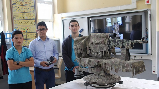 Balıkesir'in Sındırgı ilçesinde Bilgisayar Öğretmeni Ahmet İyem ve iki öğrencisi "15 Temmuz Şehit ve Gazileri" adını verdiklerini otomatik silah üretti. 3 ayda hurda malzemelerden imal edilen silah, cep telefonuyla kolaylıkla kullanılabiliyor. Sındırgı Mesleki Teknik Eğitim Merkezi (METEM) yıl sonu sergisini açtı. Sergide Bilgisayar Öğretmeni Ahmet İyem ve iki öğrencisinin geliştirdiği "15 Temmuz Şehit ve Gazileri" isimli otomatik silah büyük ilgi gördü. Sergi için tehlikesiz ve ruhsat gerektirmeyen havalı tüfek kullandıklarını belirten öğretmen Ahmet İyem, askeri kullanım amacıyla imal ettikleri silahın askerlerin can güvenliğine katkı sağlamak olduğunu belirtti. Silahın teknik özellikleri konusunda bilgi veren İyem, “Projedeki amacımız askerlerin güvenliğini sağlamak, aynı zamanda düşman hedeflerine isabetli atışlar verebilmek. Sistemimiz çok uzak mesafelerden kontrol edilebiliyor ve 300 metreyi geçebiliyor. Atış kalitesi silahına göre değişir, şu an sistemimizin üzerine güvenlik açısından havalı tüfek koyduk. Yaparken iki öğrencimizle yaklaşık 3 ay boyunca geceli gündüzlü çalıştık" dedi. Yaptıkları silahın hemen hemen tüm malzemelerini hurdalardan elde ettiklerini söyleyen Bilgisayar Öğretmeni Ayhan İyem, "Arabanın silecek motoru, çanak antenin kaldırma motoru ile bazı parçaları çamaşır makinesinden aldık. Döküm parçaları da keza öyle" şeklinde konuştu. Ürettikleri silahın çok fazla yerde kullanılabileceğini söyleyen İyem, "Silahımız özellikle askeri amaçlı kullanılabilir. Silahımızı kalekolların çatısına, bazı yerlerde askeri araçların üzerine konulabilecek şekilde yaptık. Aselsan firması kadar, devletimizin yaptığı kadar profesyonel olmasa da elimizden geldiğince üretimini gerçekleştirdik. Silahın üstündeki kamuflajları eski askeri kıyafetlerden yaptık. Sistemimiz şu an daha acemi ama geliştirilebilir. Görüntü aktarmayı cep telefonu üzerinden yapıyoruz. Telefon ekranındaki görüntüyü hedefleyebiliyoruz" dedi. Öğrencilerin isteği üzerine silaha "15 Temmuz Şehitler ve Gazileri" ismi verdiklerini söyleyen İyem, "Öğrencilerimiz bu silahın ismini koyarak şehitlerimize ve gazilerimize armağan ettiler. TÜBİTAK yarışmasına bu isimle katılmak için başvuru yaptık, ancak Mayıs ayında silahımızı bitiremediğimiz için katılamadık. İnşallah önümüzdeki senelerde tekrar yarışmaya katılacağız" şeklinde konuştu. (İHA)