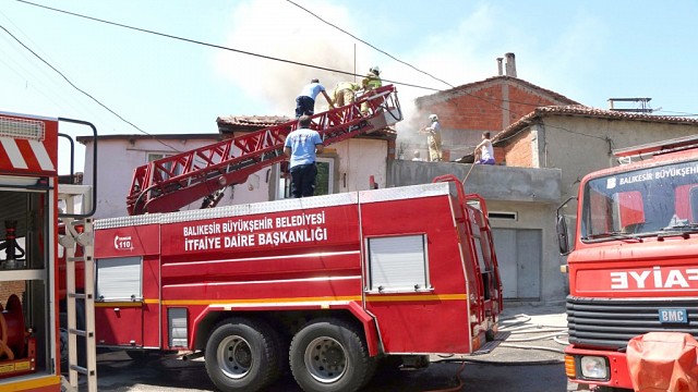 Edremit İlçesinde bir evin çatısında çıkan yangın, mahalle sakinlerine korkuttu. Edremit Hekimzade Mahallesi’nde çıkan ev yangını çatıda başladı. Nedeni bilinemeyen yangın itfaiye tarafından 1 saat içerisinde söndürüldü. Balıkesir Belediyesi İtfaiye Dairesi Başkanlığına bağlı 3 söndürme aracı yangına müdahale etti. Yan binada bulunan apartmana da sıçrayan yangın yan binanın çatısını da yaktı. Mahalle sakinlerinin çok korktuğu yangında can kaybı yaşanmazken, mahalle sakinleri korkulu saatler yaşadı. Mahalle sakinleri de diğer binalara sıçramasın diye itfaiye ekiplerine yardım etti. Yangının 1 saat kadar söndürme çalışmaları sürdü. Apartman yangını kontrol altına alınırken, bazı vatandaşlar, yangının yan binada bulunan metruk binaya giren madde bağımlısı kişiler tarafından çıkartıldığını iddia etti. Edremit Polisi ve İtfaiye ekipleri yangının çıkış sebebini araştırmaya başladı. Yangınla ilgili vatandaşın iddialarını değerlendiren polis madde bağımlılarının peşine düştü. Haber ve fotoğraf: Pervin BÖLÜKBAŞI