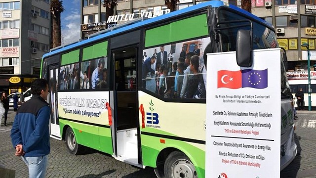 Balıkesir’in Edremit ilçeside Avrupa Birliği’nin “Türkiye’de İklim Değişikliği Alanında Kapasitenin Geliştirilmesi Hibe Programı” finansman desteğiyle Edremit Belediyesi ve Tüketici Hakları Derneği'nin birlikte yürüttüğü “Şehirlerde co2 salımını azaltmak amacıyla, enerji kullanımında tüketici farkındalığı ve sorumluluğu” projesi kapsamında, enerjisini güneşten alan “Gezici Halk Masası” hizmete sunuldu. Belediye Başkanı Kamil Saka, Başkan Yardımcıları Fatma Özgirgin, Mehmet Ertaş, Metin Tunçer, Meclis Üyeleri Şengül Sönmez, Bayram Kayahan, Fahri Yaşar, Hilkat Parıltan, Ali Yılmaz Diker, Coşkun Taşkın, CHP Eski Edremit İlçe Başkanı Yurt Yıldırım, daire müdürleri, basın mensupları ve vatandaşların katılımıyla "Gezici Halk Masası"nın açılışı ve tanıtımı Edremit Cumhuriyet Meydanı'nda gerçekleştirildi. Daha önceleri atıl durumda olan ve Edremit Belediyesi tarafından iç dizayn ve giydirme çalışması tamamlanan otobüs belirlenen program dahilinde Edremit'in 47 mahallesinde hizmet verecek. Otobüste Türkiye'de bir ilk olan yazı işleri evrak kabul ve takip hizmeti verilirken, vatandaşlar istek ve şikayetlerini de buradan belediyeye iletebilecekler. “Gezici Halk Masası” görevlilerinin kullanacağı bilgisayar, yazıcı vb. teknolojik cihazlar ise proje kapsamında finanse edilen ve tamamıyla yerli üretim olan fotovoltaik panel sistemi sayesinde gün boyu enerjisini güneşten alacak. Daha hızlı hizmet verebilmek için her zaman çözüm odaklı çalıştıklarını belirten Başkan Saka "Vatandaşlarımız "Gezici Halk Masası" sayesinde belediyemize daha hızlı ulaşabilecek. Sosyal belediyecilik anlayışı ve aradaki mesafeleri kaldırmak düşüncesiyle hazırladığımız bu çalışmanın Edremit'imize ve Edremitlilere hayırlı olmasını diliyorum. Çevreye daha duyarlı bir Edremit için yerli teknoloji ile temiz enerji üretimine ve bilinçli tüketime katkı sağlama doğrultusunda çalışmalarımıza devam edeceğiz." dedi. (İHA)