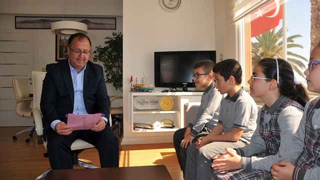 Küçükkuyu Belediye Başkanı Cengiz Balkan’ın dünkü konukları Küçükkuyu İlkokulu 3/A sınıfının öğrencileri oldu. Balkan’dan talep etikleri Laptop kısa sürede sınıfa gelince öğrencilerde teşekkür için Belediye Başkanlığının yolunu tuttular. ÖĞRENCİLER BALKAN'A TEŞEKKÜR ETTİ Okullarının temizliğine katkı sağladığı ve sınıflarına bir Laptop Bilgisayar hediye ettiği için Balkan’ı makamında ziyaret eden Küçükkuyu İlköğretim Okulu Öğrencilerinden Mehmet Batu Diken,Gürkan Yıldız, Elif Gezek, Sacide Nur Işık ve Serap Kahraman adlı öğrenciler Balkan’a teşekkür edip birde Belediyeden isteklerini belirten mektup sundular. Öğrencilerin ziyaretinden son derece memnun olduğunu ifade eden Balkan Okullarımızın ihtiyacı olan her şeyi yerine getirmek için yardımcı olmaya çalıştığını dile getirdi. Haber ve fotoğraf: Hanife ERDİNÇ