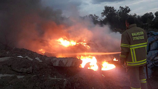 Balıkesir'in Edremit ilçesinde çöp depolama alanında çıkan yangın, zeytinlik alana sıçramadan söndürüldü. Edinilen bilgilere göre, akşam saatlerinde Kızılkeçili Mahallesi’nde bulunan Akçay Katı Atık Depolama alanında çıkan yangın rüzgarında etkisiyle büyüdü. Yangına, Balıkesir İtfaiye Daire Başkanlığına bağlı Edremit, Güre, Altınoluk İtfaiye Amirliği ekipleri müdahale etti. Kısa sürede müdahale edilen yangın söndürüldü. Yangın yerinde soğutma çalışmaları sürüyor. (İHA)