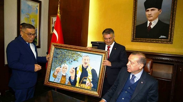 Geçtiğimiz yıl Cumhurbaşkanı Recep Tayip Erdoğan’ın eşi Emine Erdoğan ile birlikte Balıkesir’in Ayvalık ilçesini ziyaret ettiği sırada Erdoğan çiftinin zeytin hasadı yaparken çekilen bir fotoğrafı, tablolaştırılarak Ayvalıklı zeytin sanayicisi Ahmet Sucu tarafından Cumhurbaşkanı Erdoğan’a hediye edildi. Cumhurbaşkanı Recep Tayyip Erdoğan, Ayvalık’ı 61 yıl sonra ziyaret eden ilk cumhurbaşkanı olmuştu. Türkiye’de ilk kez bir cumhurbaşkanının zeytin ağacının altına girip hasat yapması ve topladığı zeytinlerin zeytinyağına dönmesini izlediği ziyaret sonrasında, zeytinyağında primin 30 kuruş yükseldiğini ve devlet desteklemelerinde de somut artışlar olduğunu kaydeden Ahmet Sucu, sektör adına Cumhurbaşkanı Erdoğan’a teşekkür etmek için Ayvalık ziyareti esnasında çekilmiş fotoğrafını tablo yaptırarak hediye ettiklerini dile getirdi. Geçtiğimiz nisan ayında Balıkesir’i ziyaret ettiği sırada Vali Ersin Yazıcı ile birlikte Cumhurbaşkanı Erdoğan’a hediye edilen tablonun başkentte Cumhurbaşkanlığı Külliyesinin duvarlarını süslemeye başlaması ise memnuniyetle karşılandı. Konuyla ilgili konuşan ressam Ata Mahmut Altınok, “Ayvalık’ta çok sevilen iş adamı Ahmet Sucu, Sayın Cumhurbaşkanımızın Balıkesir’i ziyaret edeceğini ve bu yüzden de kendisine bir sürpriz yapmak istediğini söyledi. Sayın Cumhurbaşkanımız, Ayvalık’ı ziyaret etmiş ve eşi Sayın Emine Erdoğan ile birlikte zeytin toplarken çekilmiş bir fotoğrafı resmetmemi istedi. Bu resmi tablo haline getirmemi talep etti ve bu çalışmamız böyle başlamıştı” dedi. Bir sanatçı olarak yaptığı her tabloya kendisine ait yorum kattığını anlatan Altınok, “Bu fotoğrafı acil olarak yetiştirmemiz gerekiyordu ve sadece 1 buçuk günde tablo haline getirmiştim. Bir ressamın, bir sanatçının devlet büyüklerimizden birini resmetmesi ve bunun da Ankara Beştepe’deki Cumhurbaşkanlığı Külliyesinde sergilenmesi tabi ki benim için çok büyük heyecan ve sevinçtir. Nihayetinde yaşadığım ülkemin Cumhurbaşkanı ile eşinin resmini yapmam benim için ayrı bir gururdur” diye konuştu. Ayvalık’ın zeytin sanayicisi Ahmet Sucu ise Ayvalık’ı, 61 yıl sonra ilk kez bir cumhurbaşkanının geçtiğimiz yıl ziyaret ettiğini hatırlatarak, “Onlar geçen sene 28 Kasım’da gerçekleşen ziyarette, Pelitköy’de zeytin hasadı yapıldı, benim fabrikada da bu hasadın üretimi yapılmıştı. Böylelikle Sayın Cumhurbaşkanımız ve kıymetli eşi zeytinin, zeytinyağına dönüşmesine ait serüvene bizzat tanık olmuşlardı. O ziyarette Cumhurbaşkanımızın eşiyle çekilmiş olduğu fotoğrafı biz Ayvalık’ta sanat galerisi olan arkadaşım resmetti, tablo haline getirdi ve ben de Cumhurbaşkanımız geçtiğimiz ay Balıkesir’i ziyaret ettiğinde de bu tabloyu valimizin huzurunda zeytinin bir nişanesi olarak hediye ettim” dedi. (İHA)