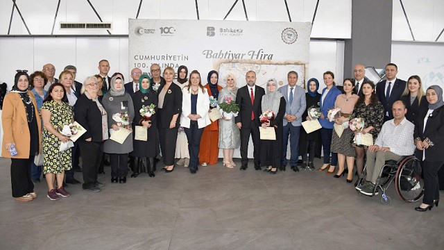 Balıkesir Büyükşehir Belediyesi ile Balıkesir Kent Konseyi ev sahipliğinde Cumhuriyet’in 100. Yılı kapsamında Ankara’dan Balıkesir’e gelen “Zirve Eserler” adlı Geleneksel Sanatlar Sergisi, sanatseverlerin beğenisine sunuldu. Balıkesir Büyükşehir Belediyesi ile Balıkesir Kent Konseyi ev sahipliğinde Türkiye Cumhuriyeti’nin kuruluşunun 100. yılı etkinlikleri kapsamında; Başkent Ankara’dan Kuvayı Milliye Şehri Balıkesir’e uzanan Zirve Eserler adlı Geleneksel Sanatlar Sergisi’nin açılışı gerçekleştirildi. Balıkesir Kent Konseyi Fuaye Alanında sanatseverlerle buluşan; ebru ve minyatürlerden oluşan eserler, ziyaretçilerin büyük beğenisini topladı. Geleneksel Türk Sanatlarının yaşatılması ve gelecek nesillere aktarılmasına katkı sağlamak amacıyla sanata ve sanatçıya değer veren Büyükşehir Belediyesi, bu kapsamdaki çalışmalarına devam ediyor. Balıkesir Büyükşehir Belediye Başkan Vekili Birol Şahin, il protokolü ve sanatseverlerin katıldığı programın sonunda; serginin sahibi Bahtiyar Hira ve öğrencilerine sertifikaları takdim edildi.
