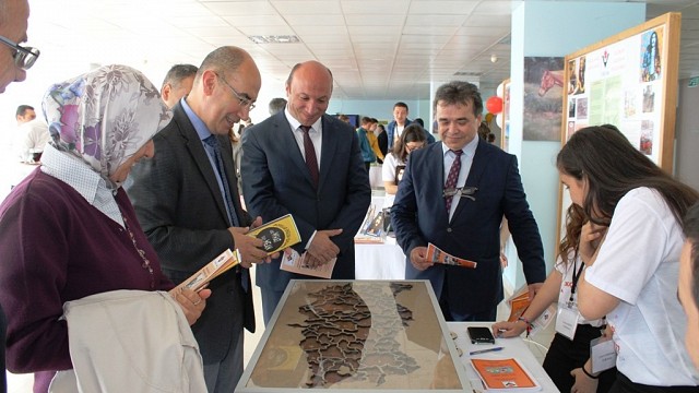 Ayvalık ilçesinde, Cunda Mesleki ve Teknik Anadolu Lisesi öğretmen ve öğrencileri tarafından hazırlanan TÜBİTAK 4006 Bilim Fuarı’na ilgi yoğun oldu. Ayvalık’ta 2016-2017 Eğitim ve Öğretim yılının ilk bilim fuarı olarak nitelendirilen açılışta; Ayvalık Kaymakamı Namık Kemal Nazlı, İlçe Milli Eğitim Müdürü Güner Bahadır, daire amirleri, okul müdürleri, okulun öğretmen ve öğrencileri hazır bulundu. Cunda MTAL Okul Müdürü Sadettin Sagit ve okul idaresinin ev sahipliğinde gerçekleşen fuar açılışında konuşan Ayvalık İlçe Milli Eğitim Müdürü Güner Bahadır, ilçedeki meslek liselerinin TÜBİTAK ile birlikte bu tür projeleri hayata geçirmelerinden duyduğu memnuniyeti ifade etti. 2016-2017 Eğitim ve Öğretim Yılı döneminde Ayvalık’taki 13 okulun TÜBİTAK’ın 4006 Bilim Fuarı gerçekleştirmeye hak kazandığını anlatan Müdür Bahadır, “Bu fuarlardan ilkinin bugün açılışını gerçekleştiriyoruz. Hayırlı olmasını temenni ediyorum. Bu projenin hayata geçirilmesinde emeği geçen başta Cunda MTAL okul müdürü Sadettin Sagit ve Müdür Yardımcısı Malik Çakıroğlu olmak üzere, koordinatör öğretmenimiz Salih Örs, projede yer alan 20 öğretmen ve tüm öğrencilerimizi tebrik ediyorum” dedi. Okulun müzik topluluğunun konser verdiği, animasyon gösterimlerinin de yer aldığı fuarın açılış kurdelesini Ayvalık Kaymakamı Namık Kemal Nazlı, eşi İlçe Sağlık Müdürü Dr. Gülçin Nazlı, İlçe Milli Eğitim Müdürü Güner Bahadır, Okul Müdürü Sadettin Sagit, Koordinatör Öğretmen Salih Örs ve iki öğrenci birlikte kesti. Açılış kurdelesinin kesiminin ardından Kaymakam Nazlı ve beraberindekiler; Eğitimde Telefonun Etkileri, Barış Manço Şarkıları ve Deyimler, Tarımda Verimlilik, İngilizce Öğretiminde Deyimler, Pi Sayısını Yaşayarak Bulma, Yeşilçam Tarihinde Ayvalık, Alternatif Enerji, Sağlıklı Staj, Edebi Rap, Hayatımızda Kitlesel İletişim, Benim Okulum, Milli Klavyemiz, Hilesiz Muhasebe ve Temiz Kazanç, Yabancı Dil Eğitimi, Güneş Enerjisi ile Çalışan Araba, Edebiyat Sokağı, Sağlıklı Abur Cuburlar, Duvar SH Skalası, Ülkemi Tanıyorum, Hayatımızda Kitlesel İletişim ve Pardusu Ne Kadar Tanıyoruz adını taşıyan projelere ait stantları gezerek, öğrencilerden bilgiler aldı ve onlarla sohbet etti. (İHA