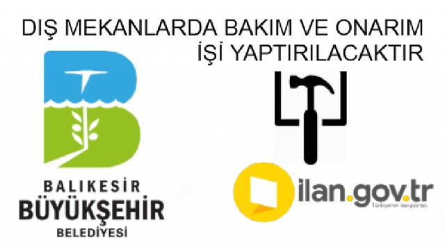 Balıkesir Büyükşehir Belediye Başkanlığı tarafından Dış mekanlarda bakım ve onarım işi yaptırılacaktır.