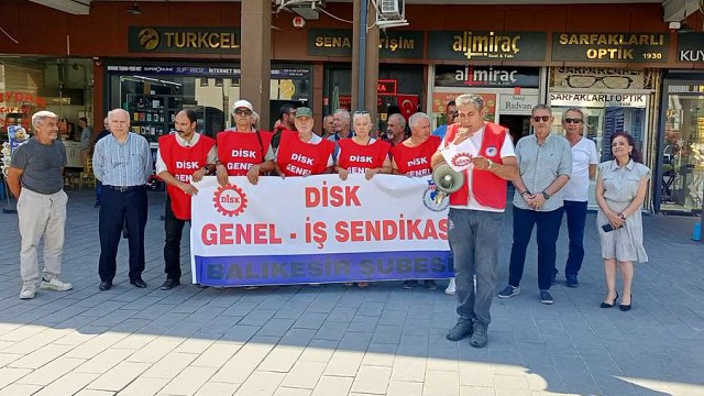 DİSK/Genel-İş Sendikası Balıkesir Şubesi, 15-16 Haziran 1970 Büyük İşçi Direnişi’nin 55. yıldönümü dolayısıyla Ali Hikmet Paşa Meydanı’nda basın açıklaması gerçekleştirdi. Anmaya, CHP Balıkesir İl Başkanı Erden Köybaşı, sendika yöneticileri ve çok sayıda sendika üyesi katıldı. Etkinlikte, DİSK’in tüm Türkiye’deki örgütlü işyerlerinde eş zamanlı olarak okuduğu 15-16 Haziran açıklaması, DİSK/Genel-İş Balıkesir Şube Başkanı Hüseyin Ovalı tarafından okundu. “Bu sadece bir anma değil, bugünü anlamak ve geleceği örgütlemektir” Konuşmasında 15-16 Haziran Direnişi’nin işçi sınıfı tarihindeki yerini hatırlatan Ovalı, “Bugün burada toplanmamızın sebebi sadece geçmişi hatırlamak değil; aynı zamanda bugünü anlamak, geleceği örgütlemektir. Çünkü koşullar çok tanıdık, tehdit çok tanıdık ve çözüm de çok tanıdık. Bugün de soframızdaki ekmek küçülüyor, haklarımız elimizden alınıyor” ifadelerini kullandı. Ovalı, iktidarın sendikal haklara, grev özgürlüğüne ve demokratik seçim süreçlerine yönelik baskılarını eleştirerek, işçilerin 1970’teki gibi kararlı bir duruş sergilemesi gerektiğini söyledi. “15-16 Haziran bir tarihten ibaret değil, bir direniş ruhudur” 15-16 Haziran 1970’te DİSK’e yönelik kapatma girişimlerine karşı on binlerce işçinin İstanbul, Gebze ve İzmit’te ayağa kalktığını hatırlatan Ovalı, o süreçte yaşamını yitiren Yaşar Yıldırım, Mustafa Bayram ve Mehmet Gıdak’ı andı. Açıklamada, “O mücadele, bu ülkenin işçi sınıfı tarihine altın harflerle yazıldı. 15-16 Haziran bir tarihten ibaret değildir; bir ruhtur, direnişin ve DİSK’liliğin adıdır” denildi. “Biz durunca hayat durur, biz yürüyünce tarih yürür” Ovalı, Türkiye’de son dönemde yaşanan ekonomik kriz, yüksek enflasyon, düşük ücretler, vergi adaletsizliği, grev yasakları ve sendikal örgütlenmenin önündeki engellere dikkat çekerek, işçi sınıfının susturulmak istendiğini ancak buna boyun eğmeyeceklerini belirtti. “Bugün de bu düzen bizden sessizlik istiyor. Ama biz DİSK’liyiz, susmayacağız” diye konuştu. Ovalı “Gelirde, vergide, ülkede adalet için yaşasın 15-16 Haziran! Sendikal haklarımız için, demokrasi için yaşasın 15-16 Haziran! Ekmek, adalet ve hürriyet için yaşasın 15-16 Haziran! Kurtuluş yok tek başına: Ya hep beraber, ya hiçbirimiz! Yaşasın DİSK, yaşasın işçilerin birliği, yaşasın 15-16 Haziran!” sözleri ile açıklamayı tamamladı. (Bülten)