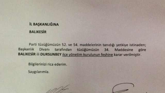 Dursunbey MHP İlçe Başkanı ve yönetimi görevden alındı
