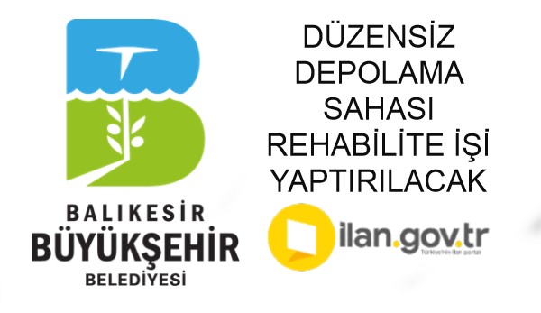 Balıkesir Büyükşehir Belediye Başkanlığı tarafından Düzensiz depolama sahası rehabilite işi yaptırılacaktır.