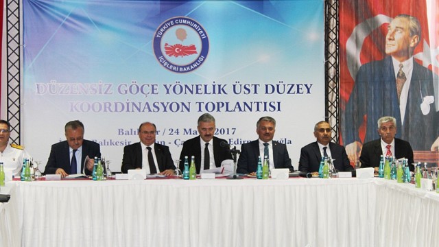 Ayvalık ilçesinde, ‘Düzensiz Göçe Yönelik Üst Düzey Koordinasyon Toplantısı’ Milli Eğitim Bakanlığı’na ait Cunda Uygulama Oteli’nde gerçekleştirildi. İzmir Valisi Erol Ayyıldız başkanlığında; Balıkesir Valisi Ersin Yazıcı, Muğla Valisi Amir Çiçek, Çanakkale Valisi Orhan Tavlı, Aydın Valisi Ömer Faruk Koçak ve Edirne Valisi Günay Özdemir’ın yanı sıra her ilin İl Göç İdaresi Müdürleri, İl Jandarma Komutanları, İl Emniyet Müdürleri ve Sahil Güvenlik birimlerinin katıldığı toplantı saat 10.30’da başladı. Basına kapalı olarak gerçekleşen toplantıda; ülkelerindeki savaş ve sefaletler nedeniyle daha rahat bir yaşam arzusuyla yasa dışı yollarla Avrupa ülkelerine gitmek isteyen göçmenler masaya yatırıldı. Türkiye'de insan ticareti suçunu önlemek ve bu suçla mücadeleye ilişkin politika ve stratejileri belirlemek gibi konularında ele alındığı öğrenilen toplantıda, Yunanistan’ın Ege Denizi’ndeki adalarına denizden geçişlerin yanı sıra Trakya bölgesinden kara yoluyla gerçekleştirilmeye çalışılan düzensiz göç yollarında alınacak önlemlerin ele alındığı belirtildi. Yılda 3 kez yapılan Düzensiz Göçe Yönelik Üst Düzey Koordinasyon Toplantısı’nın ilk kez bir ilçede yapıldığı da gelen bilgiler arasında. (İHA)