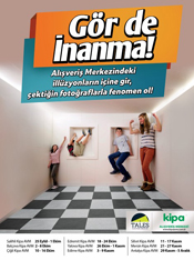 18 - 24 Ekim tarihleri arasında sergilenecek 15 farklı illüzyon modülü Edremit Kipa AVM’de görenleri şaşkına çevirecek! Edremit Kipa AVM, illüzyonun sırlarını ziyaretçileriyle paylaşıyor! 18 - 24Ekim tarihleri arasında gerçekleşecek Optik İllüzyon Sergisi, 15 farkı modelde tasarlanmış illüzyon üniteleri ile bilimin şaşırtıcı gerçeklerini gözler önüne serecek. Edremit Kipa AVM ziyaretçileri, optik illüzyon modüllerini interaktif olarak deneyimleme fırsatı yakalayacak. Ücretsiz olarak gezilebilecek bu sihirli sergi 7’den 70’e tüm ziyaretçilere unutulmaz anlar yaşatacak.