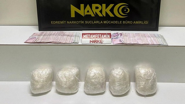 EDREMİT NARKOTİK ŞUBE EKİPLERİMİZ, BİR ARAÇTA 5 KİLO METAMFETAMİN ELE GEÇİRDİ