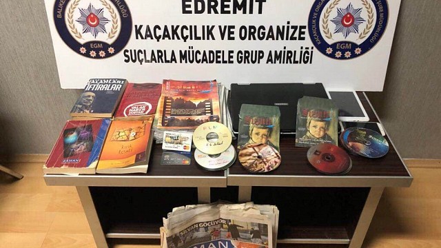 Balıkesir’in Edremit ilçesinde FETÖ/PDY terör örgütüne yönelik Edremit İlçe Emniyet Müdürlüğü ve Edremit KOM Amirliğince yapılan operasyonda bir kişi tutuklandı. Edinilen bilgilere göre, Edremit İlçe Emniyet Müdürülüğü KOM Grup Amirliğince; FETÖ/PDY terör örgütü üyesi olduğu, örgüt mensuplarına maddi destek sağlama konusunda aracılık ettiği gerekçesiyle üç aydır takip edilen A.L.K., düzenlenen operasyon ile yakalanarak gözaltına alındı. A.L.K.’nin adresinde yapılan aramada 1 adet laptop, 1 adet hafıza kartı, 1 adet cep telefonu, 1 adet tablet, 1 adet üzerinde şahıs isimleri ve yurt dışı telefon numaraları yazılı not kağıdı, 32 adet yasa dışı Fetullah Gülen CD’si, 20 adet Sızıntı dergisi, 2 adet Bankasya kartı, 7 adet Fetullah Gülen’e ait yasaklı yayın olan kitap, 1 adet FETÖ/PDY terör örgütü elebaşına yazılan mektup, 1 adet Zaman gazetesi ele geçirildi. İddiaya göre, sorgusunda "Fetullah Gülen için şehit olmak istiyorum" diyen A.L.K., çıkarıldığı nöbetçi mahkemece tutuklanarak cezaevine gönderildi. (İHA)