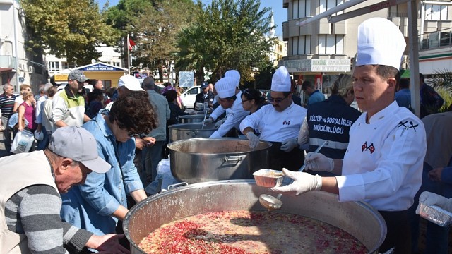 Edremit Belediyesi’nin Muharrem ayı nedeniyle düzenlendiği Edremit ilçe merkezinden başlayan aşure hayrı Akçay Cumhuriyet Meydanı’nda devam etti. Edremit Belediyesi’nden yapılan basın açıklamasında, "Edremit Belediyesi’nin her yıl Muharrem ayı nedeniyle düzenlediği aşure hayırları ilçe merkezi ve Kadıköy Mahallesi’nden sonra Akçay Mahallesi’nde devam etti. Edremit Belediye Başkanı Kamil Saka, Başkan Yardımcısı Fatma Özgirgin, Edremit Belediyesi Meclis üyesi Müberra Uyar Karaca da hayra katılarak vatandaşlara aşure ikram etti. Edremit Belediyesi aşevinde hazırlanan kazanlar dolusu aşurenin yanında diyabet hastaları için özel olarak şekersiz hazırlanan “diyet aşure” de dağıtıldı. Başkan Saka, “Birlik ve beraberliğimizin simgesi olan aşureyi Edremit ve Kadıköy’ün ardından Akçay Mahallemizde hemşehrilerimizle paylaştık. Bu vesileyle bir kez daha Muharrem ayının tüm İslam alemine ve hemşehrilerimize hayırlı olmasını diliyorum” dedi. Edremit Belediyesi’nin aşure hayırları Edremit, Kadıköy ve Akçay’dan Zeytinli, Altınoluk, Güre Mahallesi’nde devam edecek." denildi.