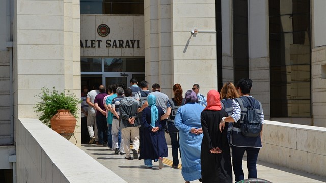 Edremit'te, Fetullahçı Terör Örgütü Paralel Devlet Yapılanması'na (FETÖ/PDY) yönelik operasyonda gözaltına alınan 14 şüpheli önceki gün adliyeye sevk edildi. Şüphelilerden 12'si tutuklanırken biri ise adli kontrol şartı ile serbest bırakıldığı bildirildi. Edremit ilçe Emniyet Müdürlüğü Terörle Mücadele Büro Amirliği (TEM) tarafından FETÖ/PDY'ye müzahir eğitim kurumu, yurt ve dershanelerde çalıştıkları, şifreli ByLock kullandıkları tespit edilen ve hakkında yakalama kararı çıkarılması üzerine 21 kişiden 14'ü Edremit'te yakalanarak gözaltına alınmıştı. Evlere ve iş yerlerine yapılan eş zamanlı operasyonlarda 14 kişi sorgularının ardından adliyeye tutuklama istemi üzerine hakim karşısına çıkartıldı. Edremit Cumhuriyet Savcısının talimatı üzere mahkemeye çıkarılan şüphelilerden Ahmet K., İbrahim Ü., Muhammet A., Sadık B. Y., Cafer S., Süleyman G., İsmail Ş., Hacer Y., Mehmet İ., Cumali T., Mustafa S. K. ve Reyhan K. tutuklanarak Burhaniye Cezaevine götürüldü. Haber: Pervin BÖLÜKBAŞI