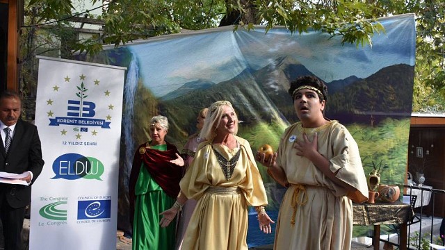 Edremit Belediyesi tarafından düzenlenen Avrupa Demokrasi Haftası etkinlikleri kapsamında, Altınoluk Mahallesi Sanat Terasları’nda Paris’in Seçimi isimli tiyatro gösterisi izleyici ile buluştu. Edremit Belediyesinden yapılan basın açıklamasında, "Kaz Dağları'nda (İda Dağı) düzenlenen dünyanın ilk güzellik yarışmasının canlandırıldığı "Paris'in Seçimi" adlı tiyatro oyunu Altınoluk Mahallesi'nde bulunan İda Sanat Terasları'nda Avrupa Yerel Demokrasi Haftası kapsamında sahnelendi. Belediye Başkanı Kamil Saka, Girit Hanya Belediye Başkan Yardımcısı EleftheriaAlifieraki, CHP Balıkesir İl Başkanı Ender Biçki, CHP Edremit İlçe Başkanı Yusuf Sel ve çok sayıda vatandaş tarafından izlenen oyunun ardından 12 yerel sanatçı ile 12 usta yıldız sanatçıya ait resimlerin yer aldığı sergi açılışı gerçekleştirildi. Edremit Belediye Başkanı Kamil Saka, Edremit’i bir Avrupa kenti haline getirebilmek için çalıştıklarını belirterek “Avrupa Yerel Demokrasi Haftası etkinliklerinde programında birçok etkinlik gerçekleştiriyoruz. Mitoloji de İda Dağı olarak bilinen Kazdağları ve Antanddros Antik kenti bizim en önemli tarihi değerlerimizden. Bu değerlerimize sahip çıkmaya çeşitli etkinliklerle daha geniş kitlere tanıtmak istiyoruz. “İda Dağı’nda düzenlenen dünyanın ilk güzellik yarışmasının sahnelendiği Paris’in Seçimi oyununu hazırlanmasına emeği geçenlere ve Sanat Terasları’nın gerekten bir sanat merkezi haline getiren sanatçılarımıza teşekkür ediyorum” dedi. Girit Hanya Belediye Başkan Yardımcısı EleftheriaAlifieraki, Edremit’te ve böylesi güzel etkinliklerde bulunmaktan mutluluk duyduğunu kaydetti, Belediye Başkanı Kamil Saka’yı Hanya’ya davet etti." denildi.