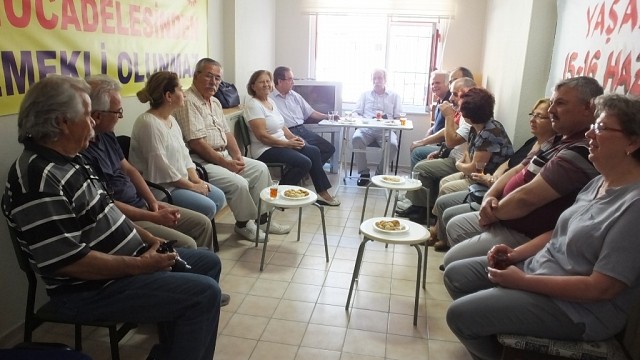 Burhaniye ilçesinde, Disk’e bağlı Tüm Emekliler Sendikası (Emekli-Sen) Genel Başkanı Veli Beysülen Burhaniyeli sendikacılarla buluştu. Yunus Nadi Pasajında bulunan Emekli Sen Burhaniye Şubesi’ni ziyaret eden Genel Başkan Veli Beysülen, üye sayısının artırılmasını istedi. Burhaniye Şube Başkanı Hıfzı Aksay ve yönetim kurulu üyeleri ile tarafından karşılanan Genel Başkan Veli Beysülen, bölgeleri ve şubeleri geliştireceklerini söyledi. Emekliler Günü’nün görkemli törenlerle kutlanacağını anlatan Beysülen, üye sayısının artırılmasını istedi ve emeklilik hakkının Atatürk’ün askerlikten emekli olmasıyla başladığını söyledi. Genel Başkan Beysülen, sendikacıların sorularınI da yanıtladı. Ziyaretten duyduğu memnuniyeti dile getiren Burhaniye Şube Başkanı Hıfzı Aksay’da, üye sayısını katlamayı hedeflediklerini kaydetti. (İHA)