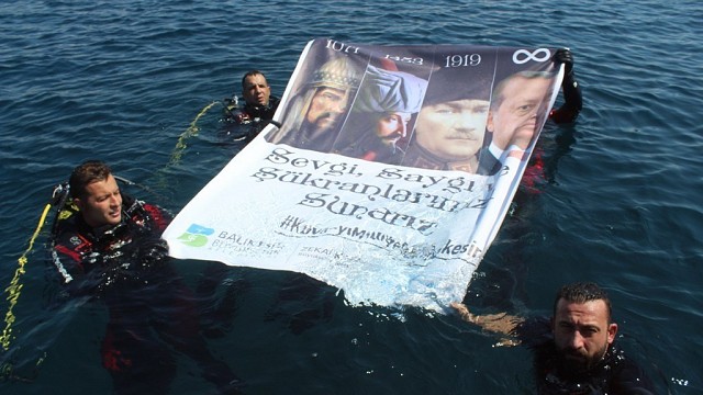Dünya engelli dalış rekortmeni Cem Esmeray, 6 Eylül Balıkesir’in Kurtuluş Günü törenlerinde dalış yaptı. 35 yaşındaki beden engelli dünya rekortmeni Cem Esmeray, kahramanların anısına gerçekleştirdiği dalışa, Balıkesir Büyükşehir Belediyesi de sponsor oldu. Esmeray, üzerinde Alparslan, Fatih Sultan Mehmet, Atatürk ve Cumhurbaşkanı Recep Tayyip Erdoğan’ın fotoğraflarının bulunduğu pankart açtı. Balıkesir Büyükşehir Belediyesi İtfaiye Daire Başkanlığı Su Altı Arama Kurtarma ekibinin katkılarıyla bedensel engelli dünya rekortmeni Esmeray, bu dalışı Kuva-i Milliye ruhu, 6 Eylül ve 15 Temmuz darbe girişimi sırasında şehit olanlar anısına gerçekleştirdiğini ifade ederek, 1071 yılından bu yana Anadolu’yu Türklere vatan yapan tüm şehitler, gaziler ve liderler için böylesi bir organizasyonu hayata geçirdiklerini ifade etti. Balıkesir Büyükşehir Belediye Başkanı Zekai Kafaoğlu başta olmak üzere Genel Sekreter Mehmet Gürbüz ve İtfaiye Daire Başkanı Halil Yılmaz ile tüm ekibine teşekkür eden Cem Esmeray, “Bir engelli dalış sporcusu olarak bugün burada yaşadığım gururu kelimelerle ifade edebilmek mümkün değil. Tarihi süreç içerisinde bazı şeyleri okuyarak gördük. Bazı şeyleri de günümüzde yaşayarak görmek zorunda kaldık. Keşke görmeseydik. Bu acıları yaşamasaydık. İnşallah yüce Mevla'm bizi bu acılarla tekrar yaşatmaz” diye konuştu. (İHA)