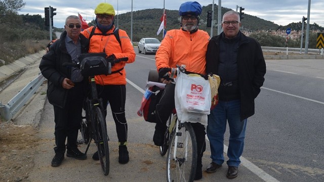 Burhaniye ilçesi, Antalya’dan yola çıkan bisikletçileri ağırladı. 60 yaşındaki asker emeklisi Hasan Taş ve Erdinç Öztürk, engellilerin sıkıntılarına dikkati çekmek için Çanakkale'ye gitmek üzere bisikletle yola çıktı. Antalya’dan yola çıkan Hasan Taş ve Erdinç Öztürk, yolculuklarını 18 Martta Çanakkale’de tamamlayacak. Yaklaşık olarak 900 kilometre pedal basacak olan ikiliyi Burhaniye girişinde dostları yalnız bırakmadı. İkiliyi, yine asker emeklisi olan Osman Becan ve Belediye meclis üyesi olan Çetin Sözer, Adyar kavşağında karşıladı. 900 kilometrelik pedal basacak olan Hasan Taş ve Erdinç Öztürk yaptıkları açıklamada, “Engelsiz Yaşam Gençlik ve Spor Kulübü Derneği ile Serebral Palsili Çocuklar Derneği adına, engellilerin yaşadıkları sıkıntılara dikkati çekmek amacıyla farklı bir etkinliğe imza atıyoruz. İki dernek adına "Hayatı Fark Ettirmek" sloganıyla 7 Mart Salı sabahı bisikletlerimizle yola çıktık. 11 gün pedal basıp, 900 kilometre yol kat ederek 18 Mart'ta Çanakkale'ye ulaşmayı hedefliyoruz” dedi. Çanakkale Zaferi'nin 102'nci yıldönümü kutlamalarına katılacak ikili, engellilerin yaşadığı sıkıntıları anlatacak. (İHA)