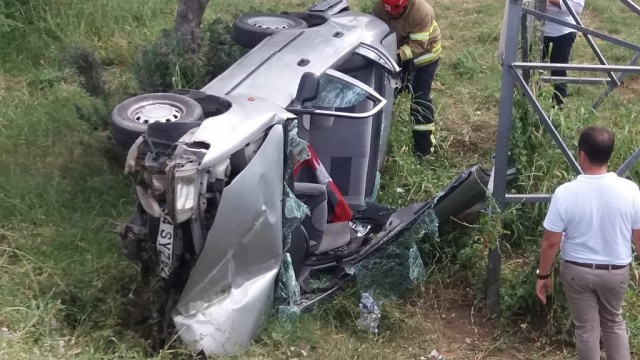 Balıkesir'de takla atan araçta bulunan iki kişi yaralandı. Edinilen bilgiye göre, Erdek'ten Bandırma istikametine giden 34 SYZ 62 plakalı Hasene D. idaresindeki otomobil, Murat bayırında kontrolden çıkarak yol kenarındaki bahçeye uçtu. Zeytin bahçesine uçan araç yüksek gerilim hattı direğine çarparak takla attı. Kazada sürücü Hasene D. ve yanında bulunan kızı Nurcan D. ters dönen otomobilin içinde sıkıştı. İhbar üzerine kaza yerine gelen 112 ve itfaiye ekipleri yaralıları sıkıştıkları yerden çıkarıp Bandırma Devlet Hastanesi'ne sevk etti. Kazaya karışan araç hurdaya dönerken, emniyet ekipleri kazayla alakalı tahkikat başlattı. (İHA)