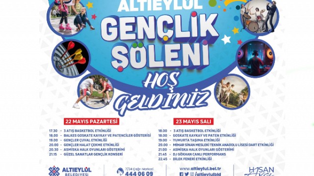 Altıeylül Belediyesi tarafından gerçekleştirilecek olan 17-18 Mayıs Gençlik Festivali hava muhalefetinden dolayı önümüzdeki hafta 22-23 Mayıs tarihlerine ertelendi. Konuyla ilgili açıklama yapan Altıeylül Belediyesi: "Vatandaşlarımıza duyurulur 17-18 Mayıs tarihleri arasında Gazi Mustafa Kemal Atatürk Yaşam Kompleksi içerisinde yer alan Asuva Parkta gerçekleştirecek olacağımız Gençlik şölenimiz, hava muhalefeti nedeni ile 22/23 Mayıs Pazartesi/Salı gününe ertelenmiştir."