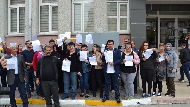 Balıkesir Yeni Atatürk Devlet Hastanesi Genel Cerrahi Uzmanı Op.Dr. Mustafa Erol'un geçici görev ile Dursunbey'e gönderilmesi, ameliyat bekleyen ve tedavisi devam eden hastalarının tepkisine neden oldu. Genel Cerrahi Uzmanı Op.Dr. Mustafa Erol'un geçici görevle Dursunbey'e gönderilmesi tedavi gören hastalarının tepkisine neden oldu. Hastalar ve yakınları topladıkları yaklaşık 200 dilekçeyi Atatürk Devlet Hastanesi yönetimine teslim ettikten sonra minibüsler ile Balıkesir Valiliğine geldiler. Dilekçelerini teslim eden hastalar daha sonra Kamu Hastaneleri Genel Sekreterliğine gitti. Yeni Atatürk Devlet Hastanesi Genel Cerrahi bölümünde tedavi gören hastalardan Fevziye Çorbacı, "genel cerrahi bölümünde ameliyat için bekleyen ve tedavileri devam eden hastalar varken hocamızın Dursunbey'e gönderilmesi kabul edilemez. Ben yaklaşık 10 ay öncesi ameliyat oldum. Ameliyat sonrası yoğun bakımdan çıktığım gün akciğerlerim su topladı ve enfeksiyon kaptım yoğun bakıma alındım. Ölümlerden döndüm. Mustafa Hocam olmasaydı şuan benim çocuklarım öksüzdü. Ameliyat sonrası 'Beni öldürün' diye bağırdım hep. Şu an başka bir arkadaşımız yoğun bakımda 'O hoca' olmadığı sürece yani bu tip ameliyatlarda enfeksiyon kapma riski çok. Niye evde çocuklarımız küçük kucağımıza alıyoruz, öpüyoruz. Niye çocuklarımız yavrularımız çünkü. Mustafa Hocamızın geçici görevinin iptal edilerek göreve dönmesini istiyoruz" dedi. Hasta ve yakınları dilekçelerini Balıkesir Valiliğine teslim ettikten sonra, Kamu Hastaneler Birliği Genel Sekreteri ile görüşmek üzere valilik önünden sessiz bir şekilde ayrıldılar. (İHA)