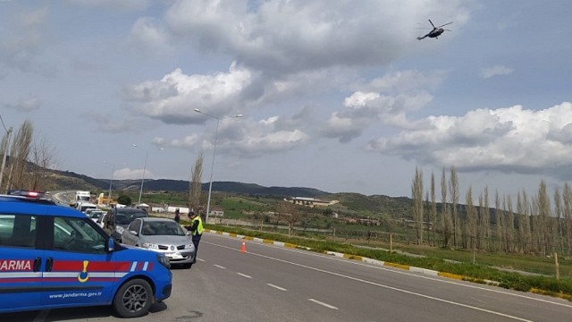 Balıkesir Valiliğinden yapılan basın açıklamasında şöyle denildi: Balıkesir İl Jandarma Komutanlığına bağlı Trafik Timleri tarafından trafik yoğunluğunun yaşandığı Altıeylül-Bigadiç-Sındırgı (D 555-09) Devlet Karayolunda oluşturulan uygulama noktalarında 29 Haziran 2020 Pazartesi günü saat:10.00-12.00 arasında “Havadan Helikopter Destekli Eş Zamanlı Trafik Denetimi” faaliyeti icra edilmiştir. Vatandaşların güven içinde seyahat etmelerini sağlamak için trafik denetimi gerçekleştiren ekiplere havadan helikopter desteği ile yapılan kontrollerde; (209) araç denetlenmiş, (11) araca (9.422) TL idari para cezası uygulanmıştır. Balıkesir İl Jandarma Komutanlığı; Asayiş ve Trafik Timleri tarafından sürücülerimizin huzur ve güven içerisinde trafikte seyir etmelerini sağlamak ve olabilecek, trafik kazalarını en aza indirmek maksadıyla havadan ve karadan aralıksız olarak trafik denetimlerine devam edilecektir. Kamuoyuna saygıyla duyurulur. Haber: Aydın DEMİRKAYA
