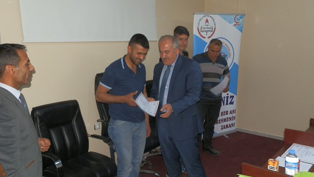 Havran Halk Eğitim Merkezi Müdürlüğü tarafından BALMEK Proje Ortaklığı,Ziraat Odası ve İlçe Gıda,Tarım Ve Hayvancılık Müdürlüğü iş birliği ile açılan 80 saat süreli Sığır Yetiştiriciliği Kursu'nun sona ermesi nedeniyle geçtiğimiz gün saat 15.30 da Havran Süt Üreticileri Birliği Toplantı Salonu'nda belge dağıtım töreni düzenlendi. HAVRAN HEM 100 KURSİYERE BELGE VERDİ 105 kursiyer ile başlayan Sığır Yetiştiriciliği Kursu'na katılan 18.40 yaş arası kursiyerlerden 100 tanesi kursu başarı ile tamamladı.Belge dağıtım törenine Kaymakam Ahmet Türköz, Belediye Başkanı Emin Ersoy, İlçe Tarım Müdürü Burak Aka, İlçe Milli Eğitim Müdür Yardımcısı,Halk Eğitim Müdürü Hasan Çam, Ziraat Odası Başkanı Adem Yakut, Süt Üreticileri Birliği Başkanı Osman Kobak, BALMEK Temsilcisi Sümeyye Güder, Ziraat Mühendisleri,Basın Mensupları ve kursiyerler katıldılar. Günün anlam ve önemini belirten konuşmayı Havran HEM Müdürü Hasan Çam; "Sığır Yetiştiriciliği Kursu'nun açılmasında, yürütülmesinde emeği geçen personele ve kursu başarı ile tamamlayan kursiyerlere teşekkür etti. Proje Ortağı olan BALMEK Temsilcisi Sümeyye Güder de kursun amacı üzerinde açıklamasını yaptıktan sonra kursiyerlere başarıları için teşekkür ederek başarılarının devamlı olmasını diledi. Ziraat Mühendisi ve Tarım Danışmanı Kursun amacı, işleyişi, faydaları konusunda açıklamalar yaptıktan sonra Kurs Eğitiminde görev yapan Ziraat Mühendisi Mehmet Sevim ve kursu başarı ile tamamlayan kursiyerlere başarılar diledi. İlçe Gıda, Tarım ve Hayvancılık Müdürü Burak Aka Sığır Yetiştiriciliği Kursu ve Hayvancılık Hibe Destekleri ile ilgili açıklamalar yaptı. Havran Belediye Başkanı Emin Ersoy, Eski Ziraat Odası ve Süt Üreticileri Birliği Başkanı olarak bu tören münasebetiyle yeniden aynı yerde olmanın mutluluk ve heyecanı tekrar yaşadığını söylerken kursun açılmasında, eğitim çalışmalarında emeği geçen personele ve başarılı olan 100 kursiyeri tebrik etti. Daha sonra Kaymakam Ahmet Türköz ve protokol üyeleri başarılı olan kursiyerlere başarı belgeleri dağıtıldı. Kaymakam Ahmet Türköz de Sığır Yetiştiriciliği Kursu'nun faydalarını ve Devlet tarafından 18 - 40 yaş arası çiftçilere verilen Hibe Destek Projeleri'ne de katılmalarını tavsiye etti. Haber ve fotoğraf: Ayhan KURT