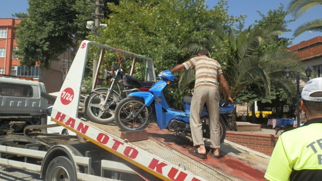 Havran Emniyet Müdürlüğü Trafik Tescil ve Denetleme Şube Müdürlüğü Ekipleri Ramazan Bayramı Arifesi'nde Trafikte tescil kaydı olmayan plakasız motosikletler için bir operasyon düzenledi. Özellikle kırsal mahallelerden şehir merkezine motosikletle gelenlerin belli yerlere park ettikleri motosikletler trafik ekibi tarafından sırayla incelendi. Trafik tescili kaydı ve plakası olmayan motosikletler bir çekici araca yüklenerek yed - i emin deposuna gönderildi. Trafikten alıkonulan motosiklet sahipleri trafik tescili ve plaka işlemlerini tamamladıktan sonra motosiklet ehliyeti ile motosikletlerini teslim alabileceklerdir. Haber ve fotoğraf: Ayhan KURT