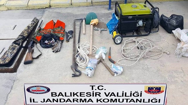 Balıkesir’in Havran ilçesinde jandarma ekipleri kaçak kazı yapan şahısları suçüstü yakaladı. Jandarma ekipleri Havran’nın Hüseyinbeşeler kırsal mahallesinin Tosundere mevkisinde izinsiz kaçak kazı yapan Y.T., H.D., H.H.G., C.P., C.Ö., S.B., ve Ö.T.’yi 2 adet av tüfeği, 1 adet jeneratör ve çok sayıda kazı malzemesi ile birlikte yakaladı. Olayla ilgili olarak Y.T., H.D., H.H.G., C.P., C.Ö., S.B. ve Ö.T. şüpheliler hakkında adli yasal işlem başlatıldı. Jandarmanın yaptığı tahkikat sırasında yakalanan şahıslardan H.D.’nin iki ayrı mala zarar verme, iki ayrı yaralama ve iki ayrı ruhsatsız ateşli silahla mermileri satın alma, taşıma veya bulundurma olmak üzere 6 ayrı suçtan arandığı tespit edilerek, şüpheli H.D. adli makamlarca Burhaniye cezaevine gönderildi. (İHA)