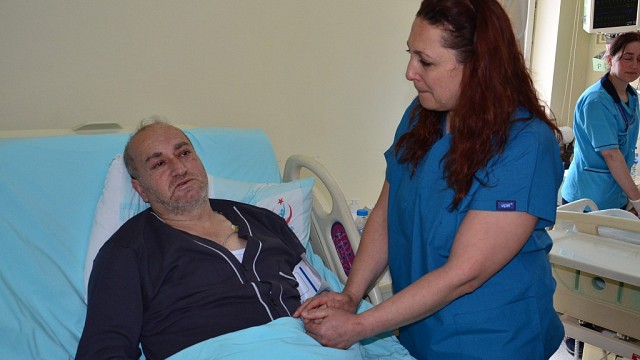 Balıkesir'de bankamatikten para çekerken bir vatandaşın yere yığıldığını gören koroner bakım hemşiresi Meral Türkyılmaz, yaptığı ilkyardım ile 50 yaşındaki Yılmaz Çelik'i hayata bağladı. Saniye saniye kameralara yansıyan olayın ardından iyileşen hasta, hayatını kurtaran hemşirenin elini öptü. Gözyaşı dolu buluşmada duygusal anlar yaşandı. Balıkesir'de hastaneye 50 metre mesafede kalp krizi geçiren hastayı fark ederek yaptığı kalp masajıyla hastayı hayata bağlayan Balıkesir Devlet Hastanesi koroner bakım hemşiresi Meral Türkyılmaz ile sağlığına kavuşan 50 yaşındaki Yılmaz Çelik’in buluşmasında duygusal anlar yaşandı. Yılmaz Çelik, hemşire Türkyılmaz’ı karşısında görünce gözyaşlarını tutamadı ve “Siz benim hayatımı kurtardınız” diyerek elini öptü. Balıkesir Devlet Hastanesinde görevli hemşire Meral Türkyılmaz, izin gününde bankamatik önünde para çekmek üzereyken bir vatandaşın yere yığıldığını görünce hemen yardıma koştu. Hastanın kalp krizi geçirdiğini gören hemşire Türkyılmaz, kalp masajıyla ilk müdahalesini gerçekleştirdikten sonra hastayı acil servise götürdü. Acil serviste görev yapan Uzman Doktor Veysi Eryiğit, Anestezi Uzmanı Mehmet Baykal ve Kardiyolog Çağatay Durna’nın uzun süren müdahaleleri sonrası hasta hayata döndürüldü. Yoğun bakımdan 1. basamak koroner yoğun bakıma alınan ve sağlık durumu iyi olan 50 yaşındaki Yılmaz Çelik ile kendisini hayata döndüren Balıkesir Devlet Hastanesi Kroner bakım hemşiresi Meral Türkyılmaz’ın karşılaşmasında duygusal anlar yaşandı. Bütün yoğun bakım personelinden 'Allah bin kere razı olsun' diyen Çelik “Doktor bey beni canlı tutabilmek için elinden geleni yapmış. Bundan sonrası mükemmeldi oradaki ilgi alaka göstermeleri mükemmel bir şeydi. Allah hepinizden razı olsun. Devletimiz her şeyi seferber etti. Kardeşimin bana denk gelmesi nasip. Göğüs ağrısı şikayetiyle hastaneye geldim, arabadan çıktım, ceketimi bırakıp acile gidecektim başka bir şey hatırlamıyorum. Sadece anjiyo bölümünde gözlerimi açtığımı hatırlıyorum. Benim için çok çaba sarf etmişler" dedi. Hemşire Meral Türkyılmaz olayın yaşandığı gün eşinin rahatsızlığı nedeniyle hastanede olduklarını söyledi. Türkyılmaz, “Ben ATM’lerin önündeyken Yılmaz Bey'in arabasından indiğini ve birden yere yığıldığını gördüm. Acil personeline sedye getirmeleri için seslendim kendim koşarak hastanın başına gittim. Onu gördüğümde elleri ve dişleri kasılmıştı, kalp rahatsızlığı olduğu belliydi. Fibrilasyon dediğimiz durumdaydı. Müdahalesini yaptım çok şükür hayatta. Onu böyle görmek mesleğim adına alabileceğim en büyük hediye" şeklinde konuştu. Balıkesir Devlet Hastanesi Başhekimi Anesteziyoloji ve Reanimasyon Uzmanı Dr.Adil Ozan Gökuç meslektaşı ile gurur duyduğunu söyleyerek “İnsanları hayata döndürmek hastane dışındaki bir hastaya müdahale etmek, onun iyi olduğunu, dua ve şükrettiğini görmek insanı çok mutlu eden şeyler. Hastalarımıza en iyi hizmeti vermeye çalışan hastanelerden biriyiz. Kardiyoloji yönünden gerçekten çok güçlüyüz. Her doktorumuzun ve hemşiremizin bu hassasiyeti vardır. Hemşire hanıma sizin huzurunuzda çok teşekkür ediyorum, hastamıza çok geçmiş olsun diyorum” dedi. İzin gününde hayatını kurtaran Hemşire Türkyılmaz'a defalarca teşekkür eden Yılmaz Çelik'in 'Müdahale etmeyebilirdiniz' sözleri ise duygu dolu anlar yaşanmasına neden oldu. (İHA)
