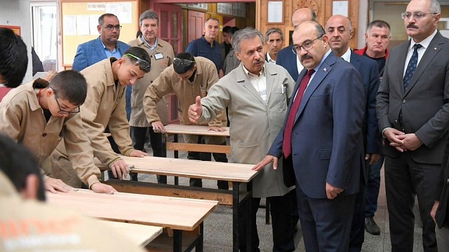Balıkesir Valisi İsmail Ustaoğlu, Altıeylül Kaymakamı Turgay Hakan Bilgin, İl Millî Eğitim Müdürü Murat Demir, İl Müdür Yardımcısı Özcan Özen ve Altıeylül İlçe Millî Eğitim Müdürü Çetin Keren ile birlikte Mimar Sinan Mesleki ve Teknik Anadolu Lisesini ziyaret etti. Balıkesir İl Milli Eğitim Müdürlüğü’nden yapılan açıklamada, “Ziyarette, Organize Sanayi Bölgesindeki hayırsever iş insanlarımızın katkıları ve Valiliğimizin destekleriyle yapımı tamamlanan 12 derslikli yeni prefabrik ek okul binası ile atölyeler incelendi, öğrencilerle sohbet edildi. Ardından öğretmenlerimizle bir araya gelinerek eğitim süreçleri ve mesleki eğitimin geleceği üzerine görüş alışverişinde bulunuldu. Heyet, ziyaretin devamında yapımı planlanan yeni okulun inşaat alanını gezerek çalışmaları yerinde inceledi. İl Millî Eğitim Müdürümüz Murat Demir ayrıca öğretmenlerle gerçekleştirdiği toplantıda Mesleki ve Teknik Eğitim Politika Belgesi üzerine değerlendirmelerde bulundu. Atölyelerde yürütülen çalışmaları yerinde inceleyerek mesleki eğitimin sahadaki yansımaları hakkında bilgi aldı. Mesleki eğitim yatırımlarının hayata geçirilmesinde katkı sunan hayırsever iş insanlarımıza ve her zaman eğitime güçlü destek veren Valimiz Sayın İsmail Ustaoğlu'na teşekkür ediyoruz.” Denildi. Haber: Hasan AKAR