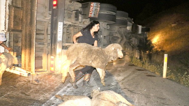 Balıkesir'in Susurluk ilçe çıkışında meydana gelen trafik kazasında içerisinde 225 tane hayvanın olduğu kamyon yola savruldu. Kazada onlarca hayvan telef olurken, çevredeki vatandaşlar, polis ve itfaiye ekipleri hayvanları kurtarmak için seferber oldu. Kaza sonrası bir çok hayvan can havliyle kaçmaya çalışırken, vatandaşlar ve trafik polisleri de kaçan hayvanları yakalamak için uzun süre uğraştı. İstanbul'dan Balıkesir'e hayvan nakliyatı yapan 34 EY 8516 plakalı araç sürücüsü Aytekin İnce Susurluk ilçesi çıkışında direksiyon hakimiyetini kaybederek aracıyla yola devrildi. Kaza sonrası içerisinde 225 tane küçükbaş hayvanın olduğu kamyonda can pazarı yaşandı. Bir çok hayvan yola savrularak can verirken, bazı hayvanlar da kamyonun kasasında telef oldu. Trafiğin yoğun olduğu cadde üzerinde hayvanlar can havliyle kaçışarak trafiği bir birine katarken, vatandaşlar ise uzun süre hayvanları yakalamak için uğraştı. Kazada araç sürücüsü yara almazken, yanında bulunan şahıs ise ambulansla hastaneye götürüldü. Çok sayıda itfaiye ekibi ve ambulansın geldiği olay yerinde hayvanlar için kurtarma seferberliği başlatılırken, olay yerine gelen bayan bir vatandaşın da kamyonun kasasına girerek, "Burada çok canlı var. Yardım etsenize" demesi ise büyük dikkat çekti. Kazayı yapan Aytekin İnce, "Tekirdağ'dan Balıkesir'e gidiyoruz. Kaza sonrası hayvanları kurtarmak için baya uğraştık. Emeği geçen herkesten Allah razı olsun. Arabada 225 tane hayvan vardı" dedi. (İHA)