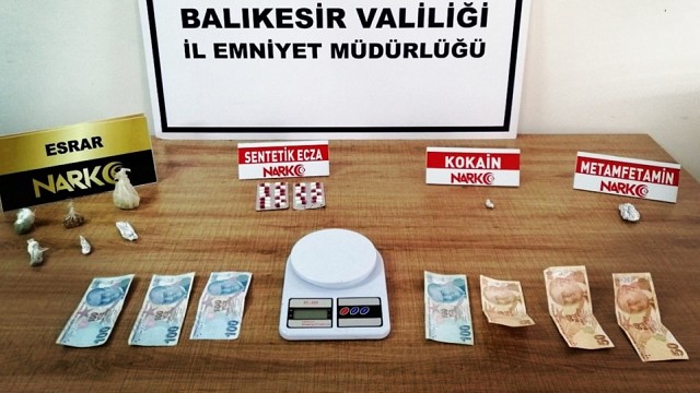 Balıkesir Valiliğinden yapılan basın açıklamasında şöyle denildi: Balıkesir İl Emniyet Müdürlüğünce İlimizde uyuşturucu madde ticareti ve kullanımını önlemeye yönelik olarak 15.01.2021 tarihinde yapılan (8) çalışmada (11) şahıs yakalanmış, yakalanan şahıslardan (1) şahıs adli makamlara sevk edilmek üzere gözaltına alınmış, (1) şahıs sevk edildiği mahkemece tutuklanmış, (9) şahıs ise haklarında yapılan adli işlemler sonrası serbest bırakılmıştır. Olaylarla ilgili yapılan aramalarda; 27,50 gram metamfetamin maddesi, 41 adet sentetik ecza hap, 3,93 gram esrar maddesi, 15,42 gram toz esrar maddesi,8 adet ecstasy hap, 0,76 gram kokain maddesi, 2 adet uyuşturucu madde satışında kullanılan hassas terazi, Uyuşturucu madde satışından elde edildiği değerlendirilen 995 tl para ele geçirilmiştir. İl Merkezinde yapılan çalışmada (1) şahıs yakalanmış, şahıs yapılan adli işlem sonrası serbest bırakılmış, yapılan aramalarda; 13 adet sentetik ecza hap ele geçirilmiştir. Bandırma İlçesinde yapılan çalışmada (1) şahıs yakalanmış, şahıs yapılan adli işlem sonrası serbest bırakılmış, yapılan aramalarda; 7 adet ecstasy hap, 0,45 gram esrar maddesi ele geçirilmiştir. Edremit İlçesinde yapılan (4) çalışmada (4) şahıs yakalanmış, (1) şahıs adli makamlara sevk edilmek üzere gözaltına alınmış, (3) şahıs yapılan adli işlem sonrası serbest bırakılmış, yapılan aramalarda; 21,38 gram metamfetamin maddesi, 28 adet sentetik ecza hap, 0,76 gram kokain maddesi, 1 adet Ecstasy hap, 3,48 gram esrar maddesi, 15,42 gram toz esrar maddesi, 1 adet uyuşturucu madde satışında kullanılan hassas terazi, Uyuşturucu madde ticaretinden elde edildiği değerlendirilen 550 tl para ele geçirilmiştir. Ayvalık İlçesinde yapılan çalışmada (2) şahıs yakalanmış, (1) şahıs sevk edildiği adli makamlarca tutuklanmış, (1) şahıs ise serbest bırakılmış, yapılan aramalarda; 4,47 gram metamfetamin maddesi, 1 adet uyuşturucu madde satışında kullanılan hassas terazi, Uyuşturucu madde ticaretinden elde edildiği değerlendirilen 445 tl para ele geçirilmiştir. Gönen İlçesinde yapılan çalışmada (2) şahıs yakalanmış, (2) şahısta yapılan adli işlem sonrası serbest bırakılmış, yapılan aramalarda; 1,65 gram metamfetamin maddesi ele geçirilmiştir. Uyuşturucu madde ticareti ve kullanımını önlemeye yönelik çalışmalarımız aralıksız ve titizlikle devam etmektedir. Kamuoyuna saygıyla duyurulur. Haber: Pervin BÖLÜKBAŞI