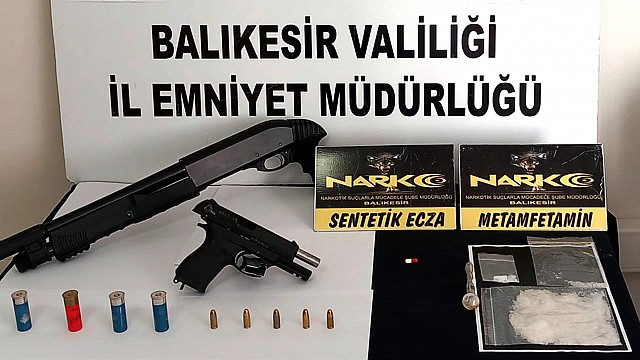 Balıkesir İl Emniyet Müdürlüğü ekiplerinin İl Merkezi ve İlçeler'de; uyuşturucu madde ticareti ve kullanımını önlemeye yönelik çalışmaları aralıksız ve titizlikle devam ediyor. Balıkesir İl Emniyet Müdürlüğünce ilimizde uyuşturucu madde ticareti ve kullanımını önlemeye yönelik olarak 29-31 Mayıs ile 01-04 Haziran 2023 tarihleri arasında yapılan (38) çalışmada İl genelinde (52) şahıs yakalanmış, (5) şahıs tutuklanmış, (2) şahıs adli kontrol kararı ile (42) şahıs haklarında yapılan adli işlemler neticesinde serbest bırakılmış, (3) şahıs gözaltına alınmıştır. Olaylarla ilgili yapılan aramalarda; 661 adet sentetik ecza hap, 230 gram metamfetamin maddesi, 20 gram esrar maddesi, 18 gram bonzai maddesi, 8 kök kenevir bitkisi, 5 gram eroin maddesi, 5 adet ecstasy hap, 2 adet av tüfeği, 4 adet kartuş, 5 adet ruhsatsız tabanca, 67 adet fişek, 1 adet hassas terazi, 22.465 TL ele geçirilmiştir. Haber: Aydın DEMİRKAYA