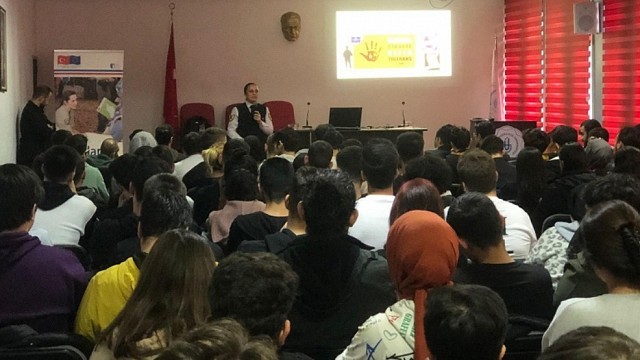 Balıkesir’de Jandarma ekipleri tarafından Bilgilendirme eğitimleri aralıksız sürdürülüyor. 30 Kasım 2022 tarihinde Gönen Meslek Yüksekokulunda 109 öğrenci ve 4 öğretim görevlisine Aile İçi Şiddetle Mücadele ve Çocuk.Kısım Amirliği tarafından “Aile İçi ve Kadına Yönelik Şiddetle Mücadele, Erkek Eğitimi ve KADES Uygulaması” tanıtımı, Siber Suçlarla Mücadele Şube Müdürlüğü tarafından ise “Siber Suçlarla Mücadele” eğitimi verilmiş olup, 45 kadın öğrencinin telefonuna KADES Uygulaması indirilerek Kadına El Kalkamaz broşürü dağıtılmıştır. Haber: Aydın DEMİRKAYA